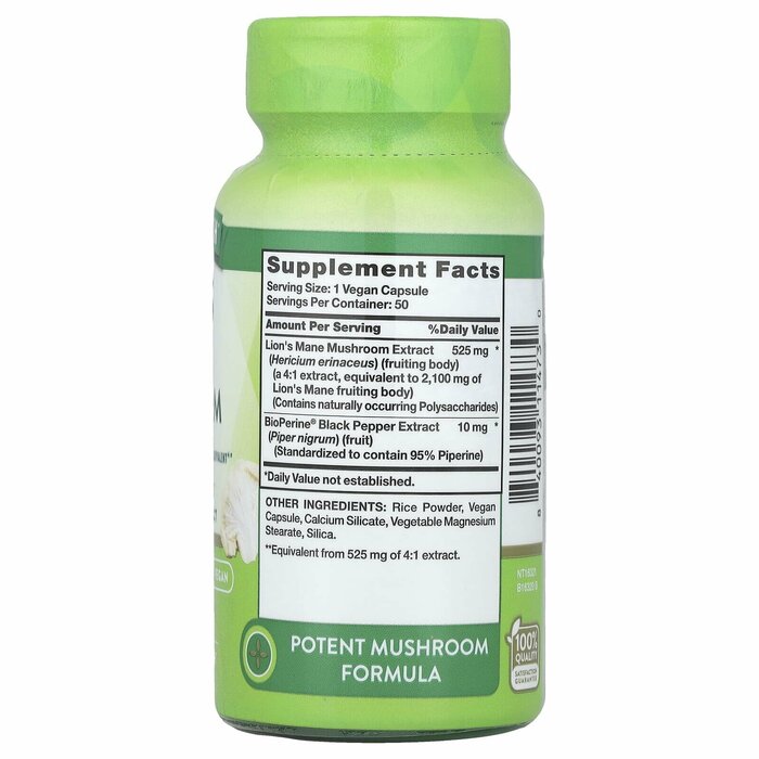 Одна вегетарианская капсула нашего гриба львиного гриба содержит 2100 мг продукта, полученного из плодового тела грибов Hericium erinaceus, который содержит полисахариды природного происхождения **. Кроме того, эта формула содержит 10 мг экстракта черного перца BioPerine® на порцию. Всего одна вегетарианская капсула в день - это все, что вам нужно.