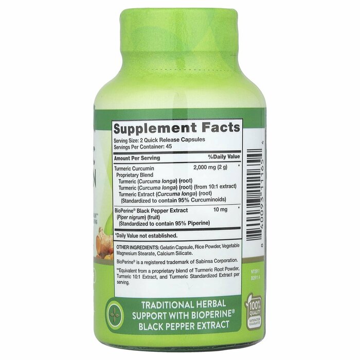 ** Эквивалент запатентованной смеси порошка корня куркумы, экстракта куркумы 10: 1 и стандартизированного экстракта куркумы в 1 порции.