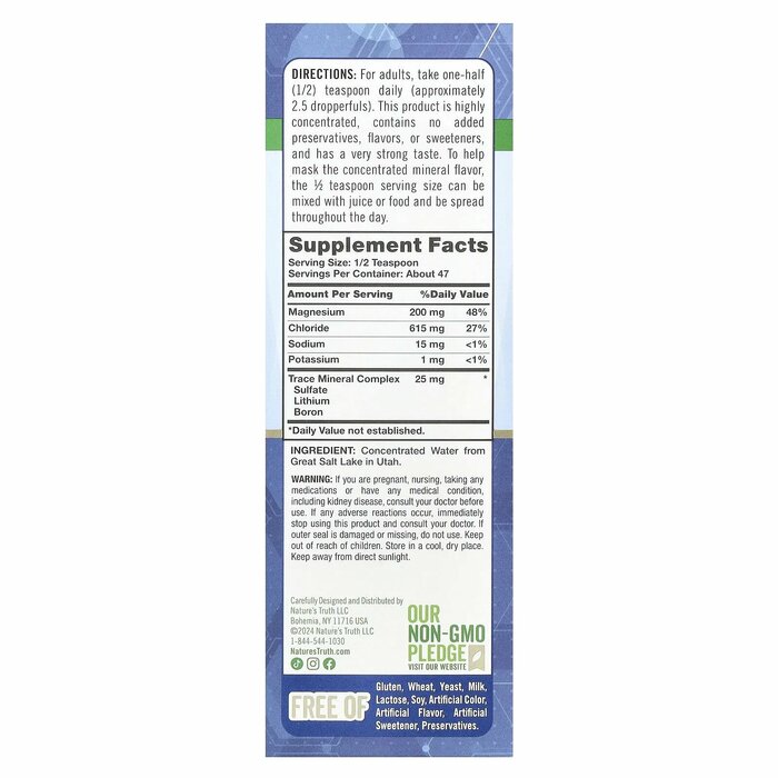 Жидкий ионный магний от Nature's Truth® - это концентрированная добавка, которая содержит необходимый минерал магний в ионной форме, наиболее распознаваемой организмом. Эта ионная минеральная жидкость содержит магний, а также природные электролиты и микроэлементы.