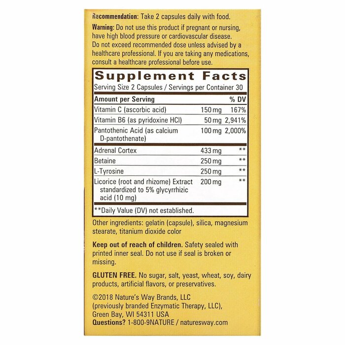 - Поддерживает работу надпочечников и здоровый уровень кортизола - гормона стресса