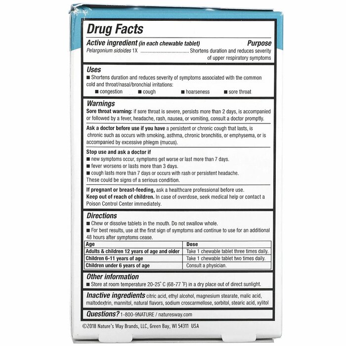 Формула для облегчения многих симптомов простуды с клинически подтвержденным вкусом пеларгонии сидовидной (Pelargonium sidoides) 1X.