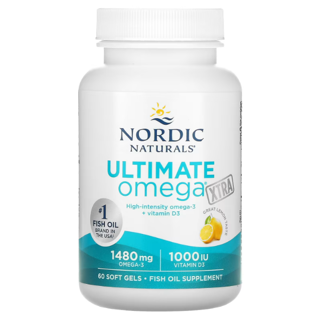 Добавка Ultimate Omega Xtra содержит больше полезных омега-3 кислот на порцию, 1000 МЕ (25 мкг) витамина D3 и высокоинтенсивные омега-3 кислоты для поддержки здоровья сердца, мозга и настроения, подвижности суставов, строения тела и оптимальной работы иммунной системы.