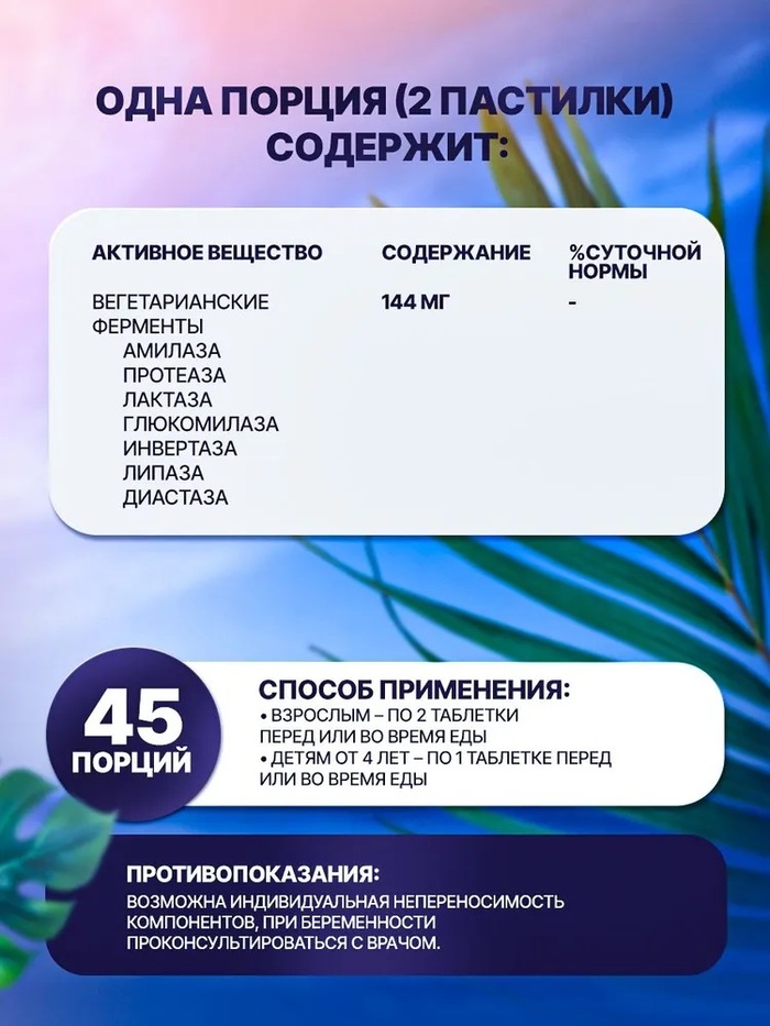 - Натуральный состав: Таблетки содержат натуральные ингредиенты, включая папаин и бромелайн, которые известны своими полезными свойствами для пищеварения.