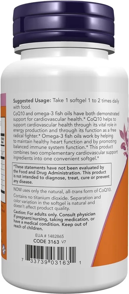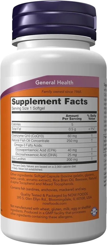 NOW Коэнзим Q10, Омега-3, Рыбий жир, 60 капсул