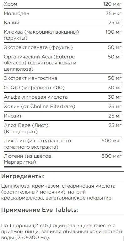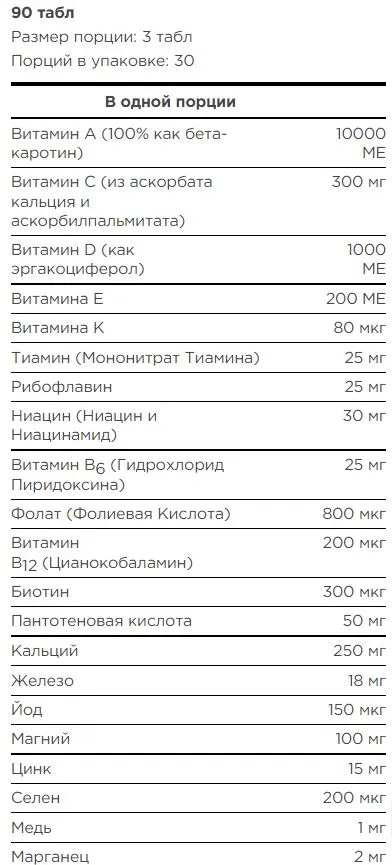 ИнгредиентыМикрокристаллическая целлюлоза, гидроксипропилцеллюлоза, покрытие на основе растительных ингредиентов [гипромеллоза (целлюлоза), карбонат кальция, ксилит, масло СЦТ (среднецепочечные триглицериды), экстракт спирулины, витамин B2], диоксид кремния, стеариновая кислота (растительного происхождения) и кроскармеллоза натрия.