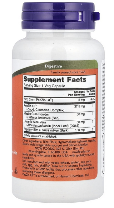 Gastro Comfort от NOW разработан для поддержания здоровья слизистой желудка. Gastro Comfort содержит клинически протестированный ингредиент PepZin GI, представляющий собой запатентованный комплекс цинка и карнозина, который, как было доказано, поддерживает целостность слизистой желудка, стимулируя естественные процессы заживления. В состав Gastro Comfort также включена мастиковая камедь, смола мастикового дерева, которая традиционно использовалась для поддержания здоровья пищеварительной системы. Вяз ржавый и алоэ вера, входящие в состав этого продукта, также способствуют поддержанию здорового процесса пищеварения.