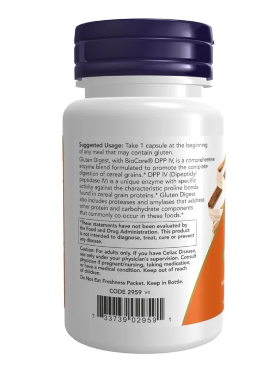 Принимайте по 1 капсуле в начале любого приема пищи, которая может содержать глютен.