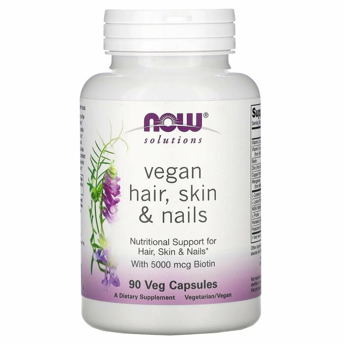 NOW Веганская добавка Solutions для здоровья волос, кожи и ногтей, 90 капсул