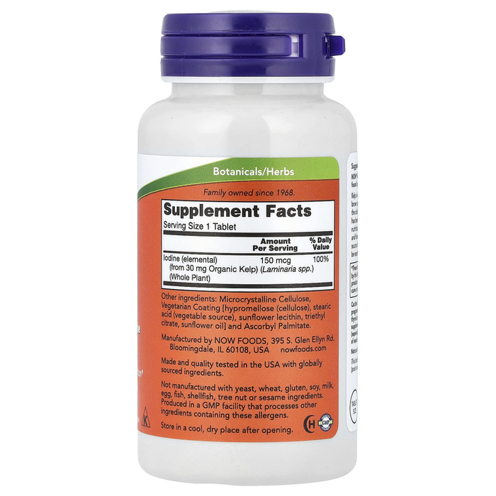 NOW Ламинария (150 мкг) — это добавка на основе водорослей ламинарии (кельпа), которая является богатым источником йода, витаминов, минералов и антиоксидантов. Йод, содержащийся в кельпе, играет важную роль в поддержке нормальной работы щитовидной железы, регулируя обмен веществ и уровень энергии в организме. Регулярное употребление этой добавки помогает поддерживать баланс гормонов щитовидной железы и предотвращать гипотиреоз, особенно в районах с дефицитом йода.
