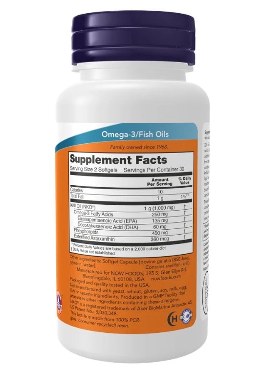 NOW Масло криля (500 мг) — это высококачественная добавка, содержащая масло криля, известное своими мощными омега-3 жирными кислотами (EPA и DHA), а также астаксантином, природным антиоксидантом. Масло криля добывается из криля, обитающего в чистых водах Антарктики, и обладает высокой биодоступностью, что способствует эффективному усвоению этих полезных веществ организмом.