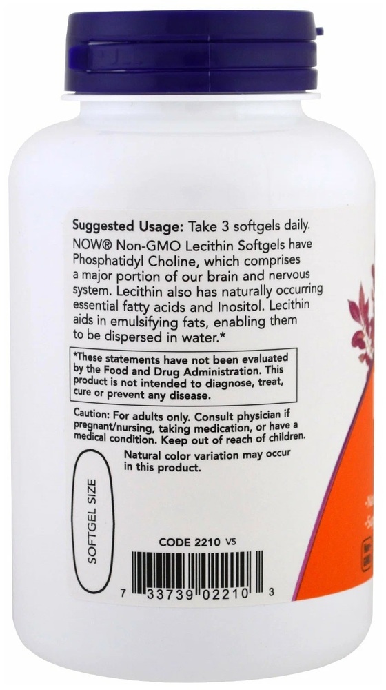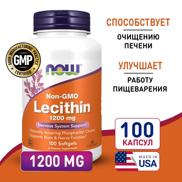Лецитин NOW — это добавка, содержащая 1200 мг лецитина в каждой капсуле. Лецитин является важным компонентом клеточных мембран и поддерживает нормальное функционирование организма. Он играет ключевую роль в обмене веществ, а также помогает улучшать когнитивные функции, поддерживать здоровье печени и нормализовать уровень холестерина.