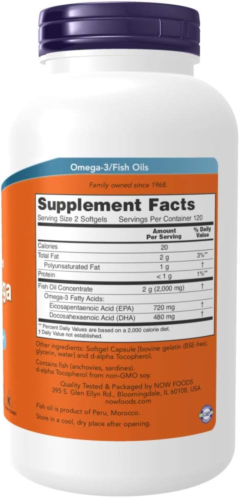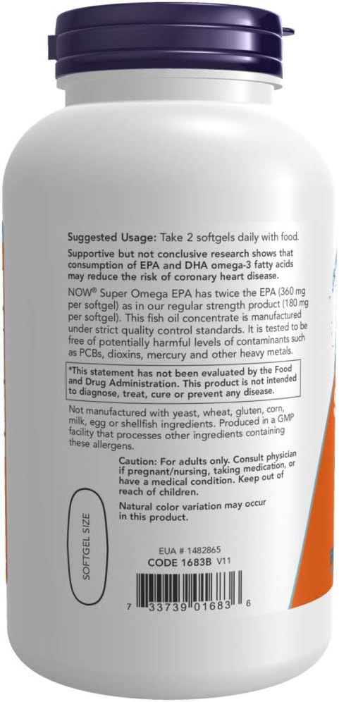 NOW Супер Омега ЭПК 1200 мг представлен в капсулах, что делает продукт удобным для ежедневного применения. Упаковка на 120 капсул (или 240/360 капсул, в зависимости от варианта упаковки) предлагает длительный курс приема и является экономичным решением для тех, кто регулярно принимает омега-3 для поддержания здоровья. Добавка не содержит искусственных добавок или консервантов, что гарантирует её высокое качество и безопасность.