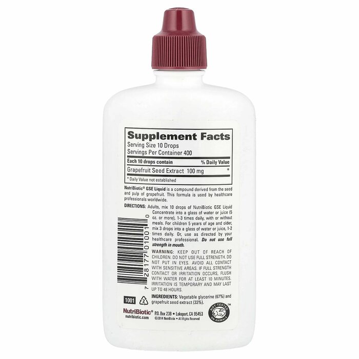 Жидкий концентрат NutriBiotic GSE имеет натуральный состав, полученный из семян и мякоти грейпфрута. Эта формула используется специалистами в сфере здравоохранения во всем мире.