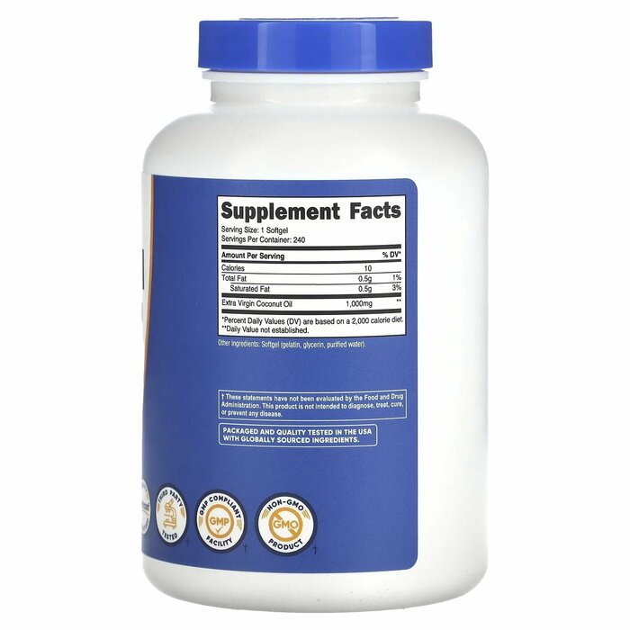 Nutricost Нерафинированное кокосовое масло высшего качества (1000 мг), 240 капсул