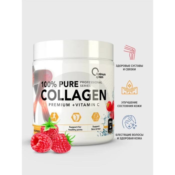 Optimum System Коллаген + Витамин С Малина, 200 г