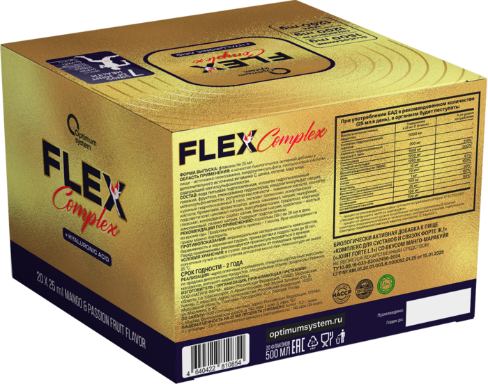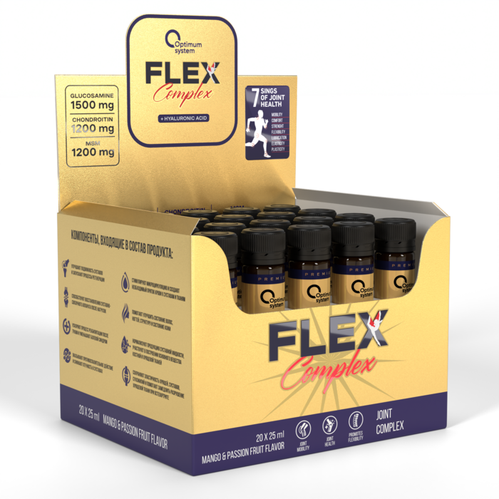 Optimum System FLEX Complex — эффективный комплекс для поддержания здоровья суставов, связок и хрящей, который поддерживает эластичность суставов, уменьшает воспаление и способствует восстановлению после травм.