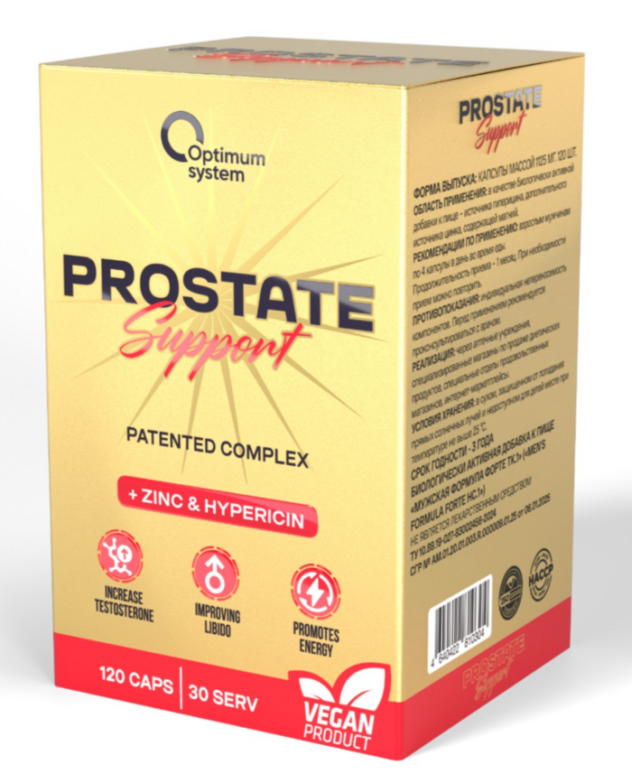 Prostate Support Optimum System — комплекс активных экстрактов и микроэлементов, разработанный для поддержки здоровья предстательной железы, нормализации гормонального баланса и защиты от возрастных изменений.