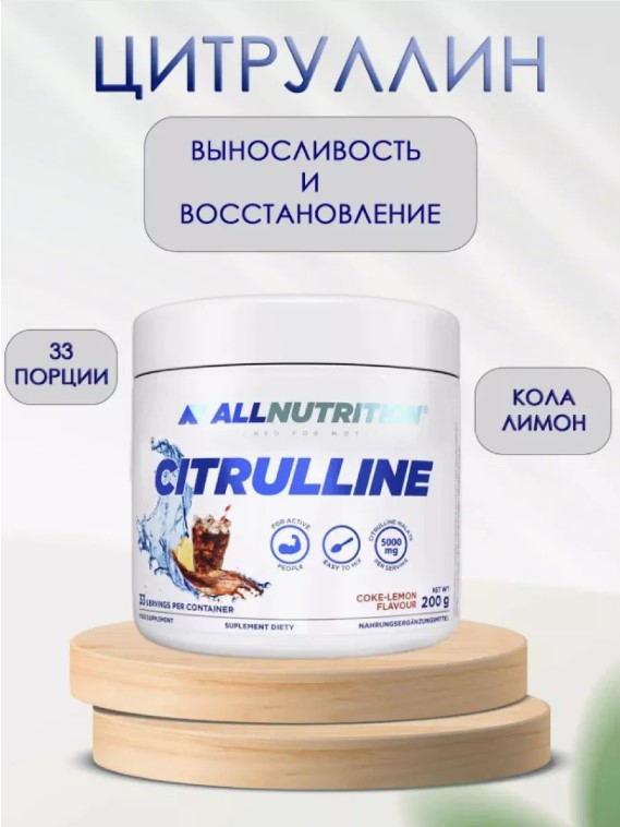 Аминокислота L-цитруллин Кола-лайм от бренда AllNutrition — это высококачественная добавка, предназначенная для поддержки физической активности и улучшения спортивных результатов. В каждой упаковке содержится 200 г порошка с освежающим вкусом колы и лайма, который легко растворяется в воде.