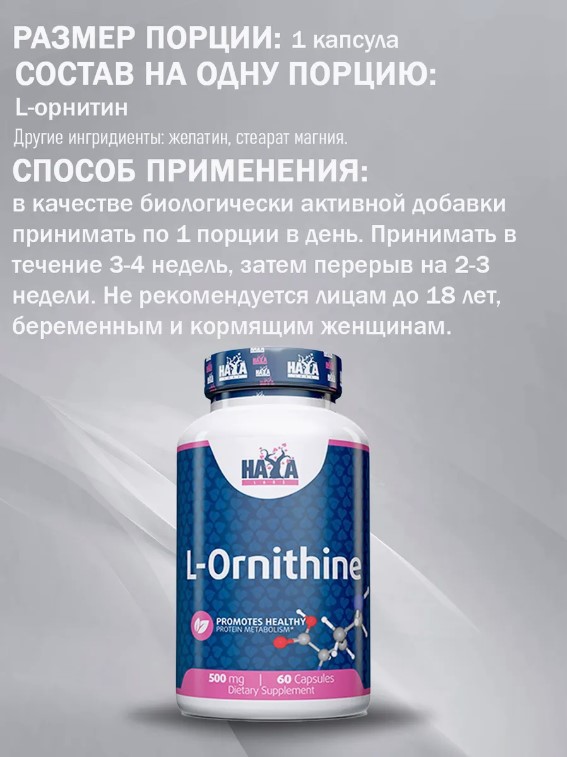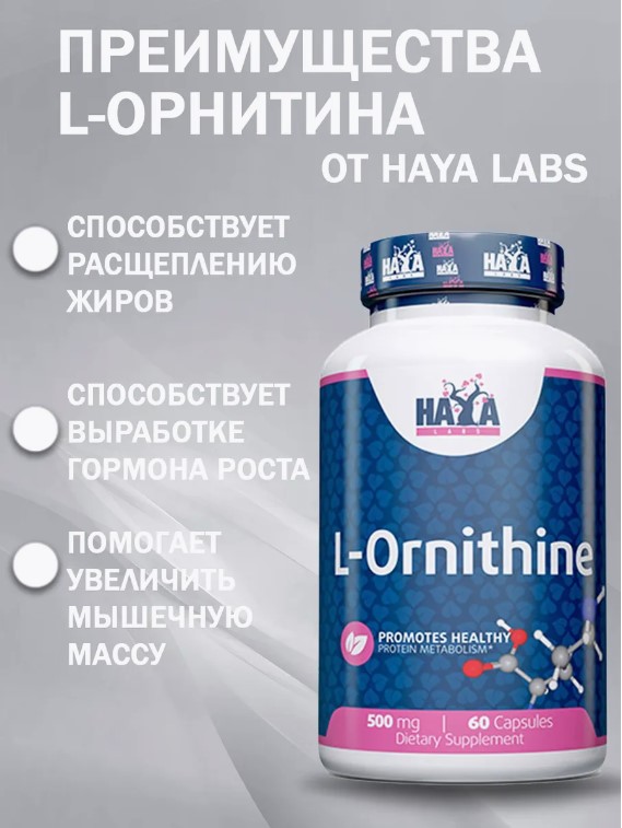 Отдельные аминокислоты Haya Labs L-Ornithine 500 mg — это высококачественная добавка, предназначенная для поддержки спортивных результатов и восстановления организма. В каждой упаковке содержится 60 капсул, каждая из которых обеспечивает 500 мг L-орнитина.