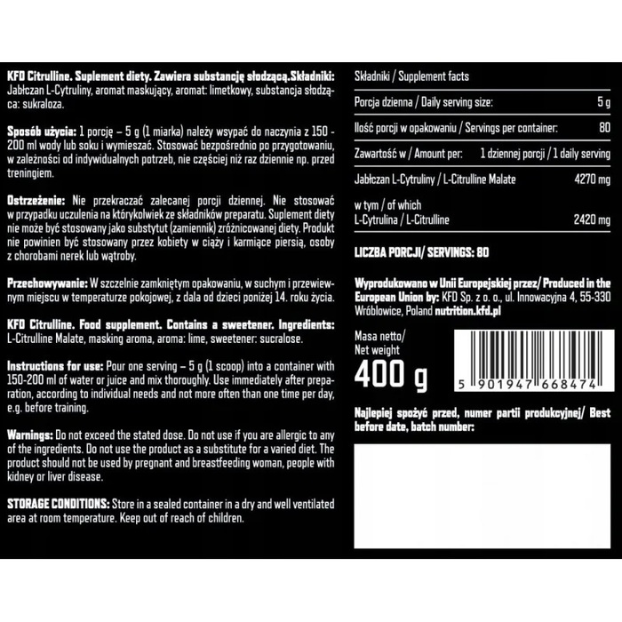 Порошок KFD Nutrition Premium Citrulline имеет приятный тропический вкус и легко смешивается с другими напитками. Он подходит как для профессиональных спортсменов, так и для любителей, стремящихся улучшить свои результаты.