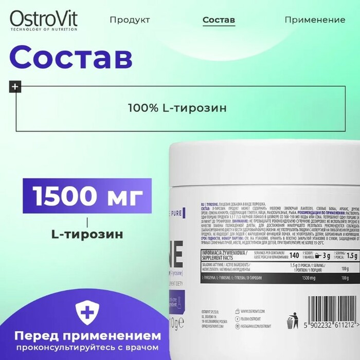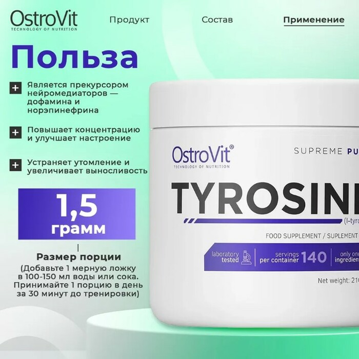 Капсулы легко проглатываются и не содержат искусственных добавок, что делает их удобными для ежедневного использования. Ostrovit Tyrosine подходит для спортсменов и людей, ведущих активный образ жизни.