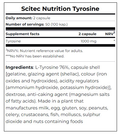 Отдельные аминокислоты Scitec Nutrition Tyrosine — это высококачественная добавка, содержащая тирозин, который является важной аминокислотой для организма. В каждой упаковке содержится 100 капсул, что обеспечивает длительный курс приема.
