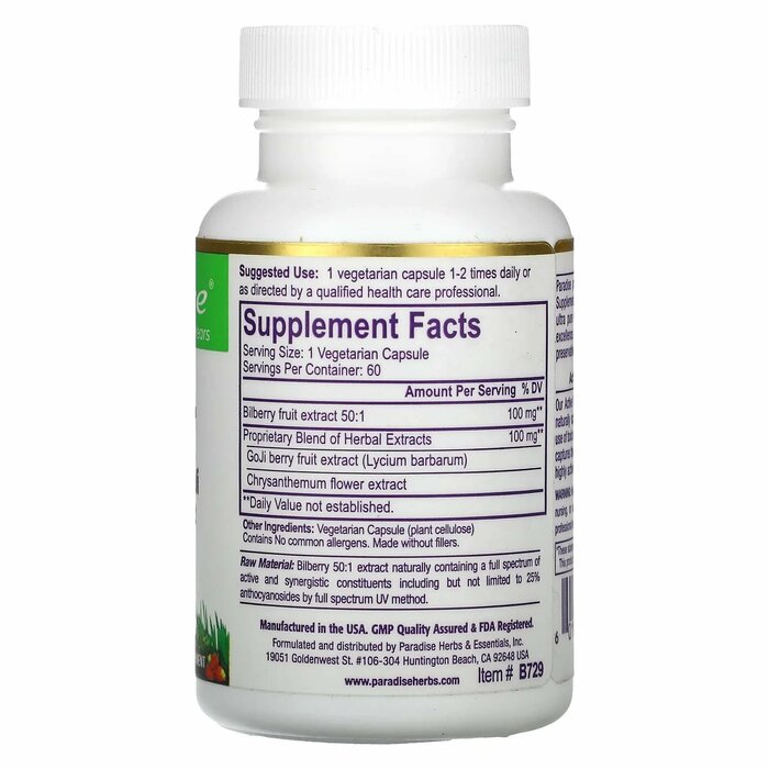 Необработанный продукт: Экстракт черники 50: 1, содержащий полный спектр активных и синергетических компонентов, включая, помимо прочего, 25% антоцианозидов, полученный методом полного спектра УФ.
