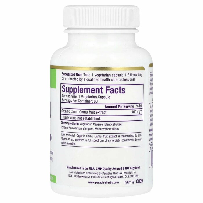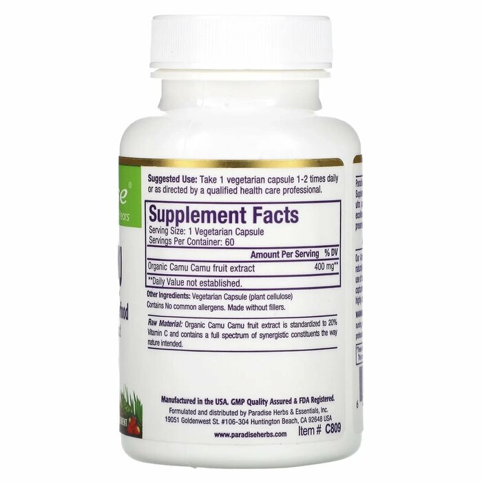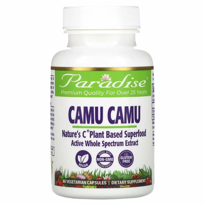 Сырье: экстракт органических ягод каму-каму стандартизирован до 20 % витамина C, содержит полный спектр синергетических элементов аналогично природному.