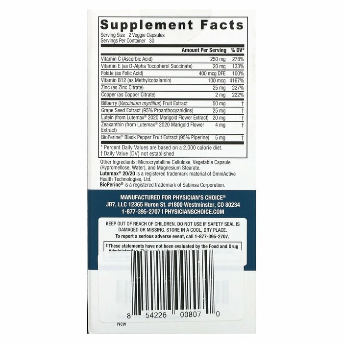 Physician's Choice Формула на основе Areds2 для глаз, 60 капсул