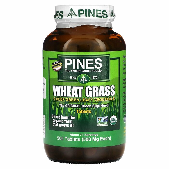 Органические ростки пшеницы от Pines выращиваются только на ледниковых почвах без орошения. Они созревают медленно в холодные месяцы. Морозные ночные температуры и холодные дни превращают месяцы полного солнечного света в ростки, богатые питательными веществами (таблетки на 98% состоят из ростков пшеницы).