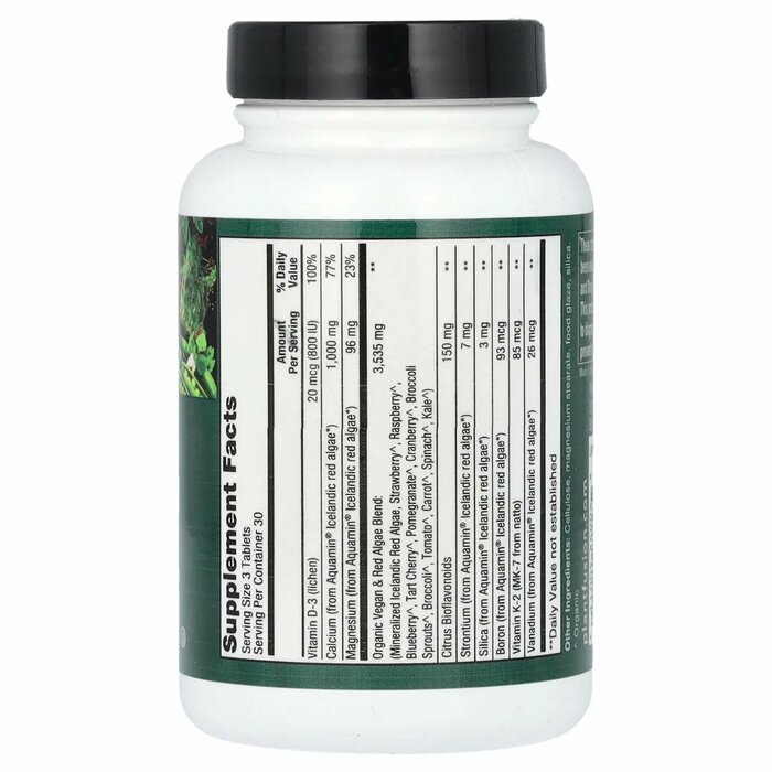 Минерализованные красные водоросли Aquamin® собирают в нетронутых арктических водах Исландии. Он богат кальцием, магнием и 72 микроэлементами. Aquamin® помогает минерализовать костные клетки и поддерживает плотность и прочность костей. Минерализация костей также усиливается при приеме витаминов D3 и K2.