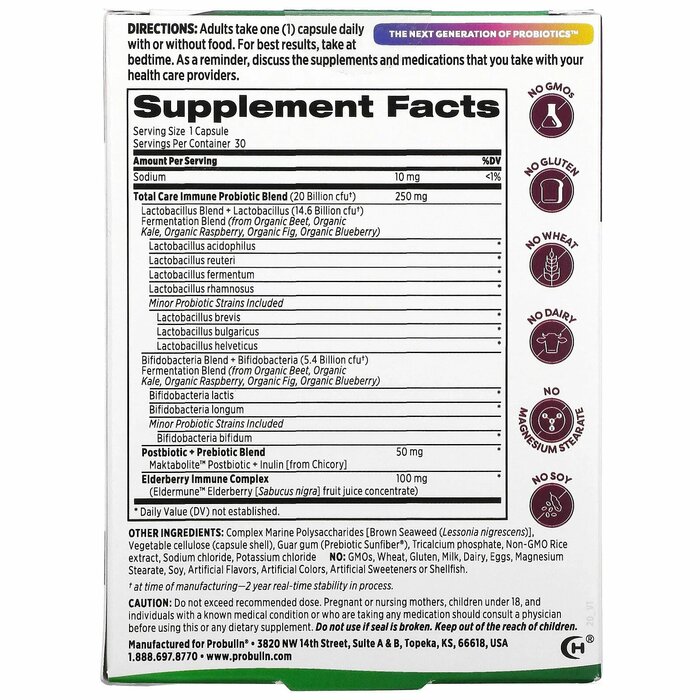 Пробиотик для укрепления иммунитета Total Care Immune Probulin обеспечивает поддержку как пищеварительной, так и иммунной системы благодаря наличию пре-, пост- и пробиотиков, а также содержит бузину для укрепления иммунитета.