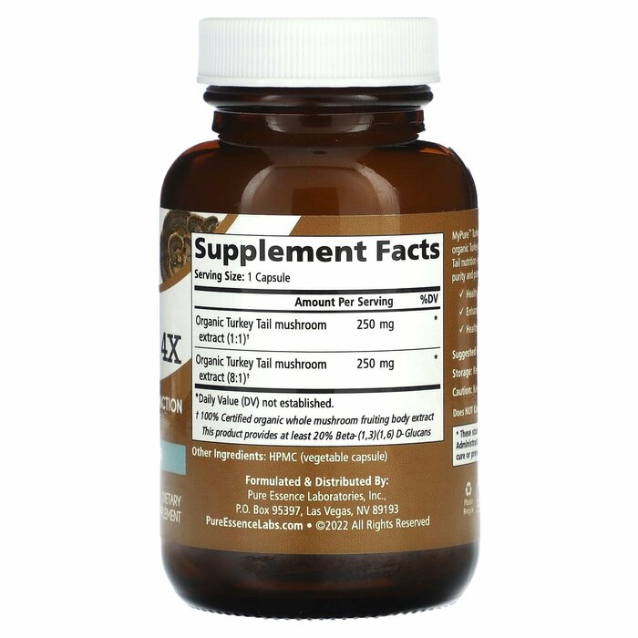 MyPure ™ Turkey Tail 4X сочетает в себе экстракты сертифицированных органических плодовых тел индейки (в соотношении 1: 1 и 8: 1), чтобы обеспечить максимально эффективный питательный продукт из индейки. Каждая партия проходит лабораторные испытания на чистоту и эффективность. Хвост индейки поддерживает: