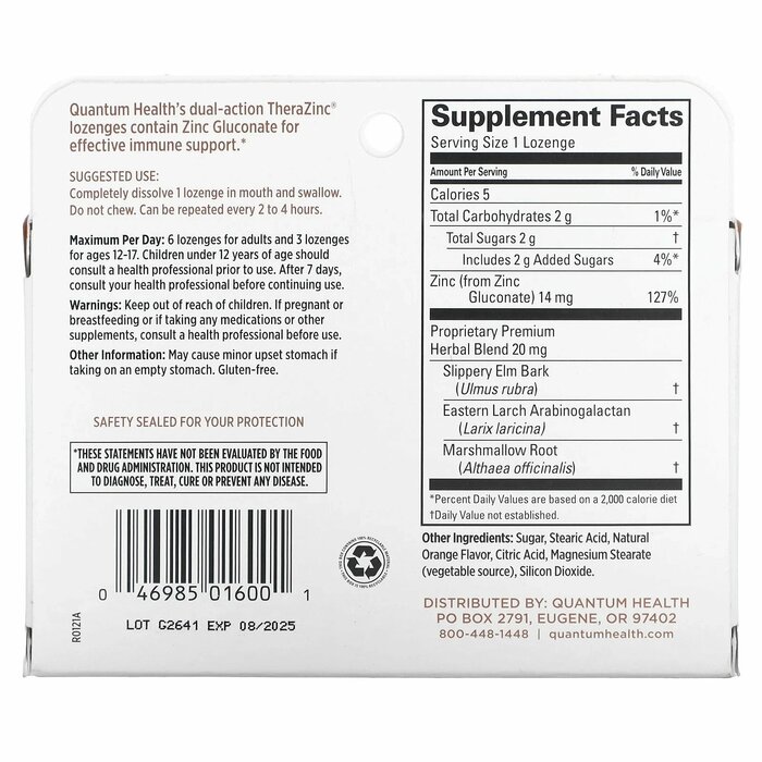 Пастилки двойного действия TheraZinc® от Quantum Health содержат глюконат цинка для эффективной поддержки иммунитета.