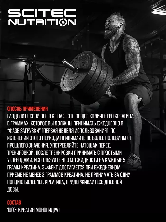 Креатин моногидрат от Scitec Nutrition — одна из самых эффективных спортивных добавок для увеличения мышечной силы, мощности и выносливости. Этот продукт содержит чистый креатин моногидрат, который является естественным соединением, присутствующим в мышцах и играющим ключевую роль в обеспечении энергией при интенсивных физических нагрузках. Креатин моногидрат помогает увеличить запасы креатинфосфата в мышцах, что позволяет быстрее восстанавливать аденозинтрифосфат (АТФ) и поддерживать высокий уровень энергии во время тренировок.