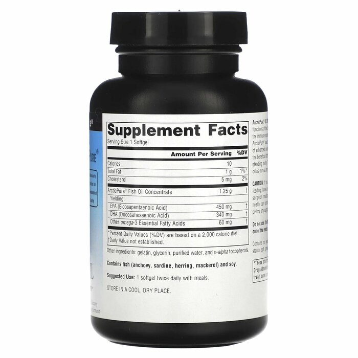 Препарат Arctic Pure® с повышенной эффективности омега-3 рыбьим жиром не только поддерживает функции мозга, суставов и системы кровообращения, но также укрепляет иммунитет. Каждая желатиновая капсула содержит 850 мг омега-3. В ArcticPure® используется рыбий жир из самых чистых источников на Земле. В процессе очистки на молекулярном уровне из неочищенного жира экстрагируются и концентрируются полезные жирные кислоты, обеспечивая исключительную чистоту продукта. Самый современный процесс упаковки в капсулу обеспечивает максимальную чистоту рыбьего жира.
