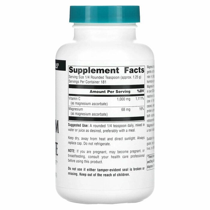 Аскорбат магния — некислое вещество с нейтральным уровнем pH. Оно мягко воздействует на пищеварительную систему. Витамин С играет важную роль в синтезе коллагена, метаболизме аминокислот, синтезе гормонов и в функционировании иммунной системы организма. Магний — важный минерал, играющий ключевую роль в более чем 300 ферментативных реакциях обмена веществ. Эти реакции включают те, которые участвуют в цикле Кребса (один из основных процессов производства энергии в организме), накоплении энергии, расщеплении жирных кислот, синтезе белка, метаболизме ДНК, произвольном и непроизвольном расслаблении мышечной ткани, активности нейротрансмиттеров и гормональной регуляции. Магний содержится в основном в костях и играет роль в их формировании.