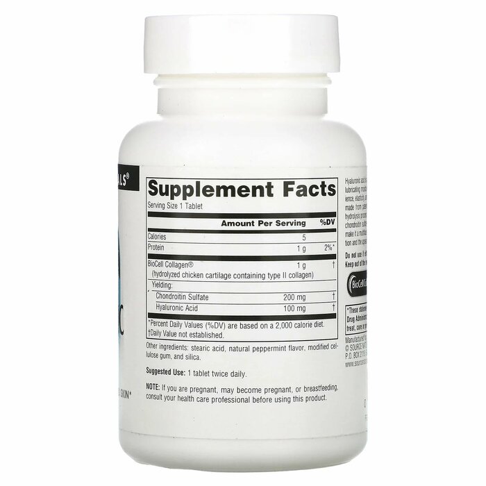 Гиалуроновая кислота - основной компонент тканей суставов. Он помогает удерживать смазывающую влагу в суставах и хрящах, что влияет на их упругость, эластичность и силу. Гиалуроновая кислота Source Naturals производится из запатентованного BioCell Collagen®, который прошел процесс гидролиза, в результате которого были получены гиалуроновая кислота с низким молекулярным весом, хондроитинсульфат и пептиды коллагена типа II. Эти элементы делают его многогранным ингредиентом, который может поддерживать работу суставов и поддерживать внешний вид кожи.