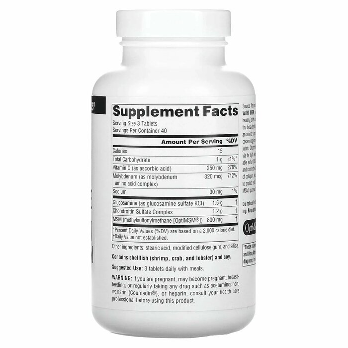 Комплекс глюкозамина и хондроитина Source Naturals с МСМ обеспечивает четыре важных строительных блока для здоровья суставов и соединительных тканей: глюкозамин, хондроитин, биодоступную серу (МСМ) и витамин С. Глюкозамин, аминосахар, является важным структурным компонентом гликозаминогликанов, больших линейных молекул. которые помогают смазывать суставы. Хондроитинсульфат оказывает дополнительную структурную поддержку за счет высокой степени взаимодействия с коллагеновыми волокнами. Биодоступная сера (МСМ) играет важную роль в поддержании целостности суставов и соединительных тканей. Витамин С, необходимый для выработки коллагена, также эффективно нейтрализует свободные радикалы и защищает клетки. Молибден способствует полному метаболизму МСМ, глюкозамина и хондроитина.