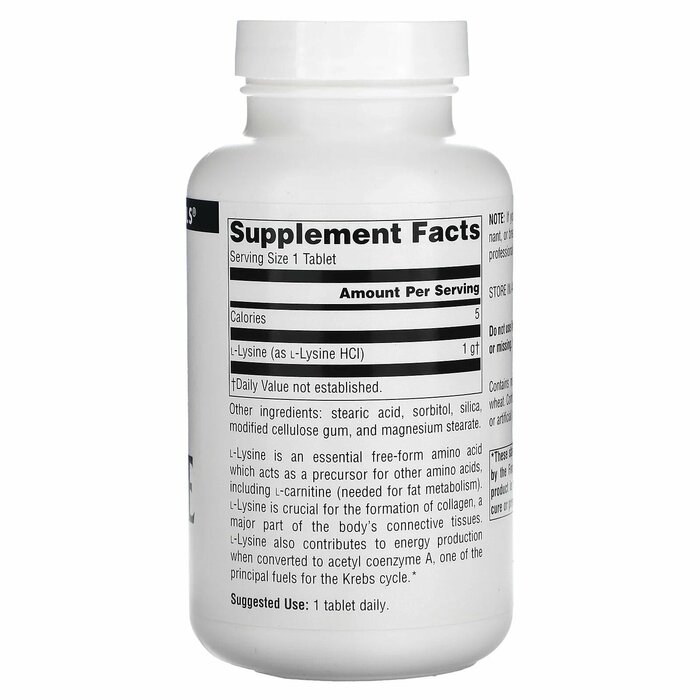 L-лизин представляет собой незаменимую аминокислоту в свободной форме, которая действует как прекурсор других аминокислот, включая L-карнитин (необходимый для метаболизма жиров). L-лизин имеет решающее значение для образования коллагена, основной части соединительных тканей организма. L-лизин также способствует выработке энергии при преобразовании в ацетилкофермент A, одно из основных топлив для цикла Кребса.