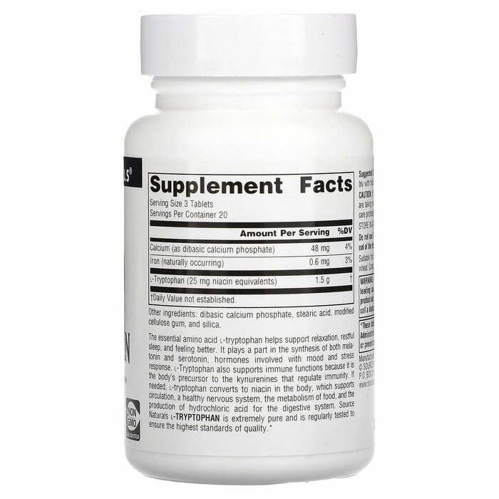 Незаменимая аминокислота L-триптофан способствует расслаблению, полноценному сну и улучшению самочувствия. Она участвует в синтезе мелатонина и серотонина — гормонов, отвечающих за настроение и реакцию на стресс. L-триптофан также поддерживает иммунную функцию, поскольку является прекурсором кинуренинов, регуляторов иммунитета. При необходимости L-триптофан в организме превращается в ниацин, который поддерживает кровообращение, здоровье нервной системы, метаболизм пищи и выработку соляной кислоты для пищеварения. L-триптофан Source Naturals чрезвычайно чистый и регулярно тестируется для соответствия высочайшим стандартам качества.