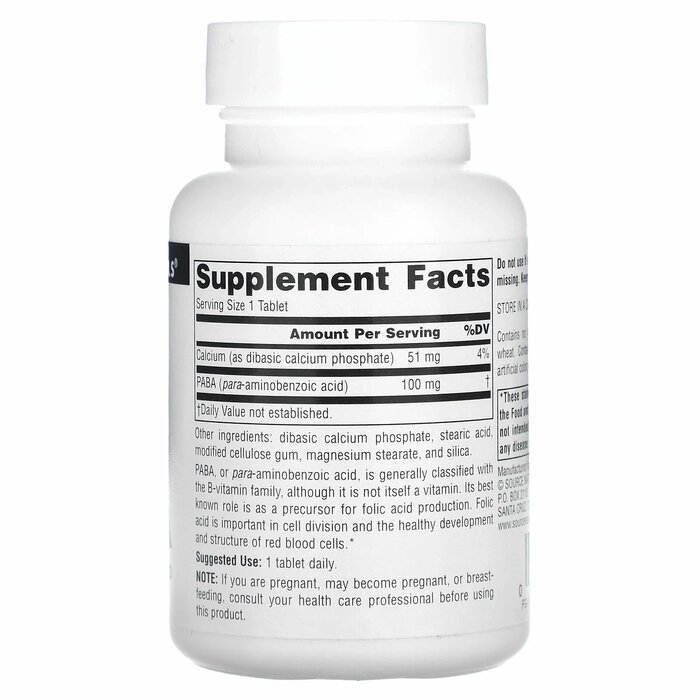 Source Naturals Пищевая добавка PABA (100 мг), 250 табл