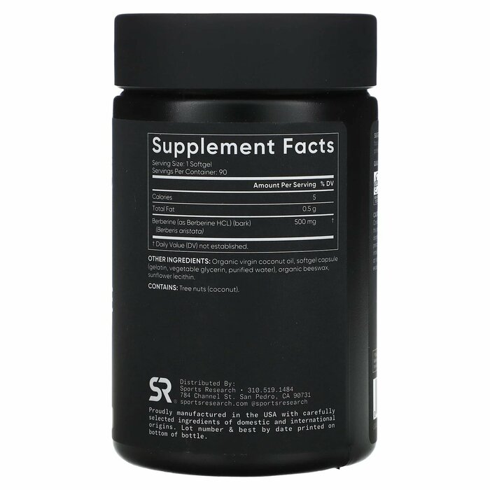 Sports Research Берберин с кокосовым маслом (500 мг), 90 капсул