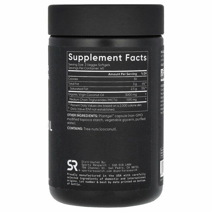 Sports Research Кокосовое масло первого отжима (3000 мг), 120 капсул