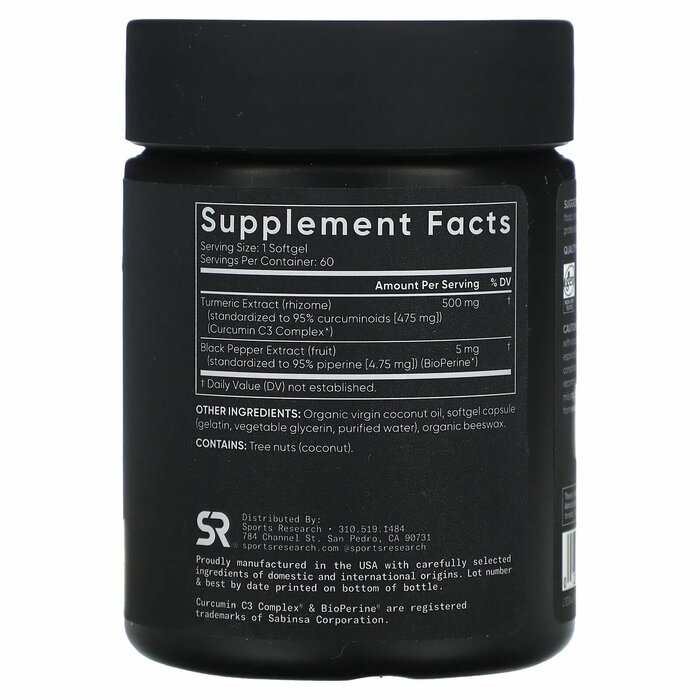 Sports Research Куркумин из куркумы (500 мг), 60 капсул