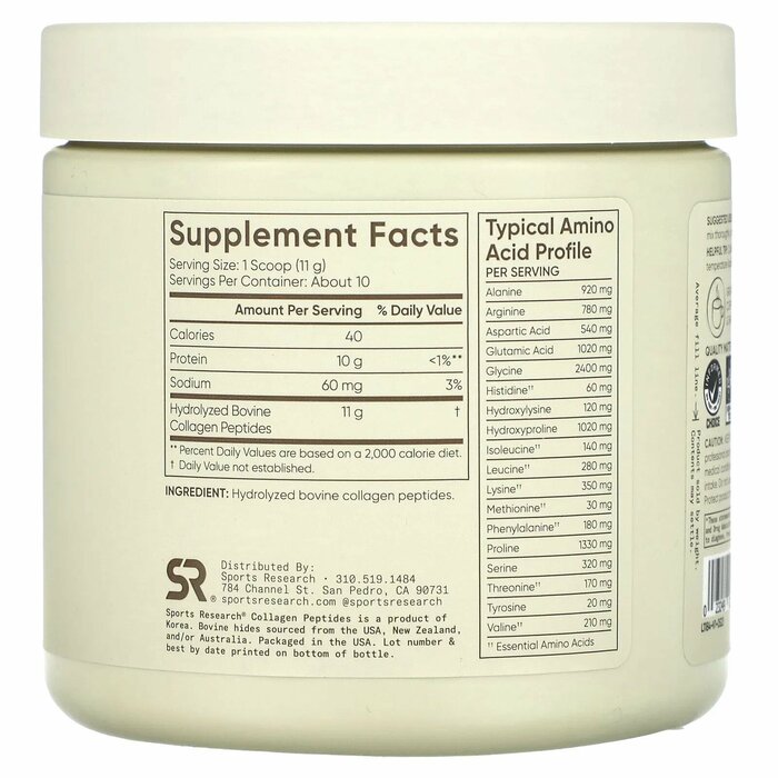 Встречайте свой новый утренний ритуал! Пептиды коллагена Sports Research® гидролизуются, поэтому они превращаются в ваш любимый напиток и легче усваиваются. Коллаген — самый распространенный белок в организме человека, но знаете ли вы, что с возрастом наш организм вырабатывает его все меньше? Это приводит ко всему, от морщин до проблем с суставами и многому другому. Достаточное количество коллагена обеспечивает оптимальное функционирование всего организма - от волос, кожи и ногтей до здоровья суставов. Содержит 11 граммов пептидов коллагена типа I и III в одной мерной ложке и 18 аминокислот - гидролизованные пептиды коллагена Sports Research® являются идеальной поддержкой для восстановления после тренировки, чтобы вы могли дольше наслаждаться спортом и хорошо выглядеть.