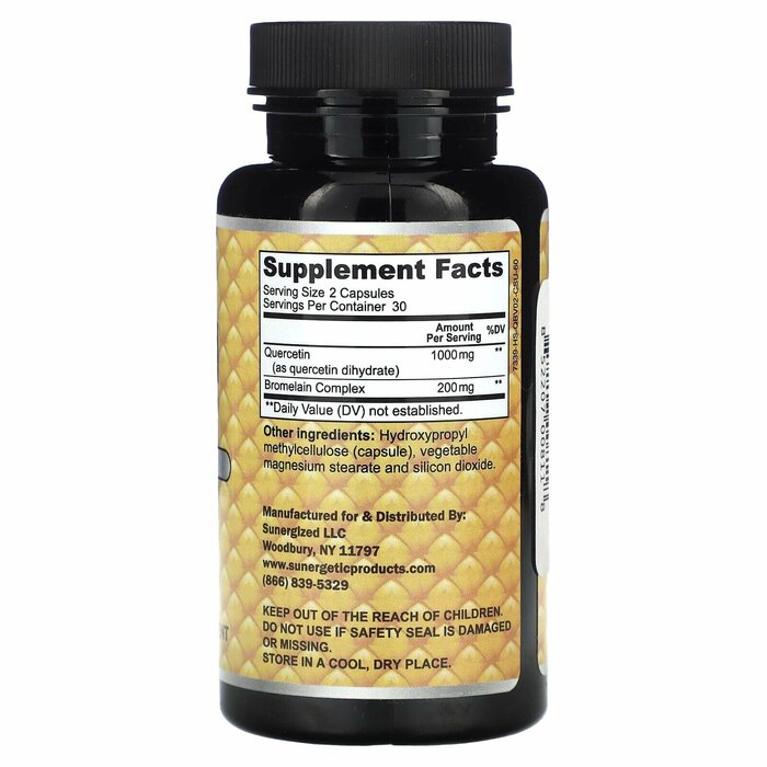 ПОМОГАЕТ ПОДДЕРЖАТЬ ИММУННУЮ СИСТЕМУ: Вне зависимости от сезона вы можете попробовать нашу формулу кверцетина и бромелаина, которая поможет поддерживать общее самочувствие *. В одной порции две вегетарианские капсулы содержат 1000 мг кверцетина (в виде дигидрата кверцетина) и 200 мг бромелаина.