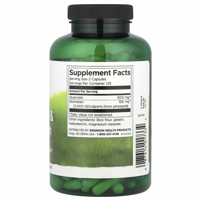 Для дополнительной поддержки иммунитета попробуйте кверцетин и бромелаин от Swanson. Эта уникальная формула сочетает в себе биофлавоноид кверцетин и фермент бромелаин, полученный из ананаса, для поддержки функции верхних дыхательных путей. Каждая капсула содержит 250 мг кверцетина и 78 мг бромелаина.