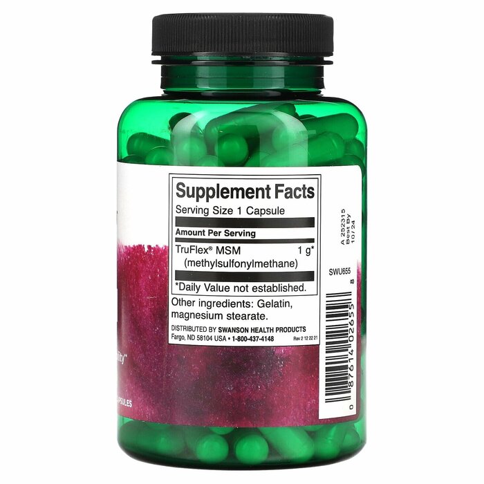 С легкостью поддерживайте здоровье хрящей, сухожилий, связок и кожи с помощью МСМ Swanson TruFlex®. Эта уникальная формула представляет собой органическую форму незаменимой минеральной серы, которая является биологически активной и легко усваивается.