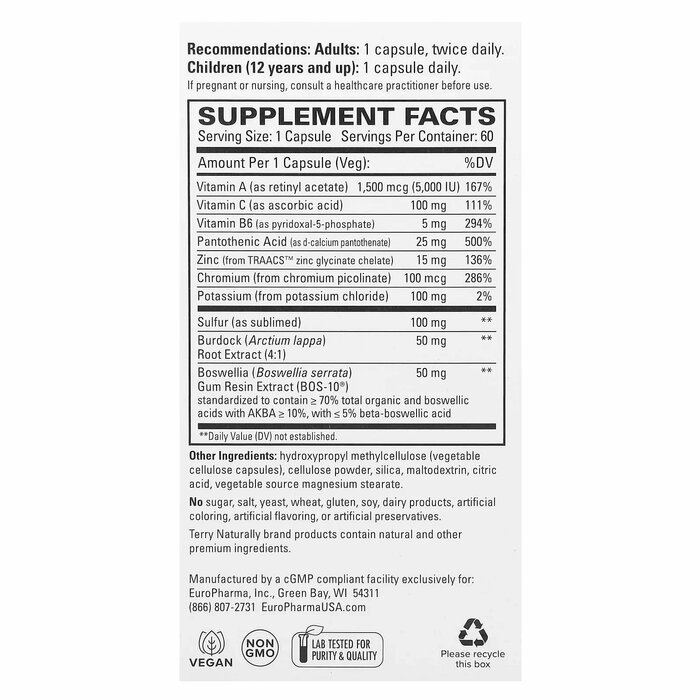 - Витамин С, босвеллия и цинк поддерживают иммунную систему и защищают организм от окислительного стресса.